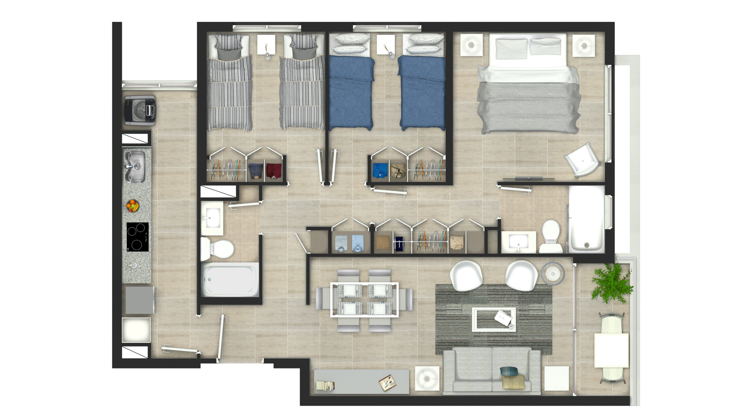 Los departamentos están diseñados con un alto estándar de calidad, con excelentes terminaciones y detalles que te harán sentir que estás en un lugar especial. Entre las características que destacan, se encuentran la encimera vitrocerámica, horno y campana, cocina cubierta de granito y grifería de primer nivel, cocina americana, refrigerador panelable y microondas. Todo pensado para que disfrutes al máximo de tu nuevo hogar.